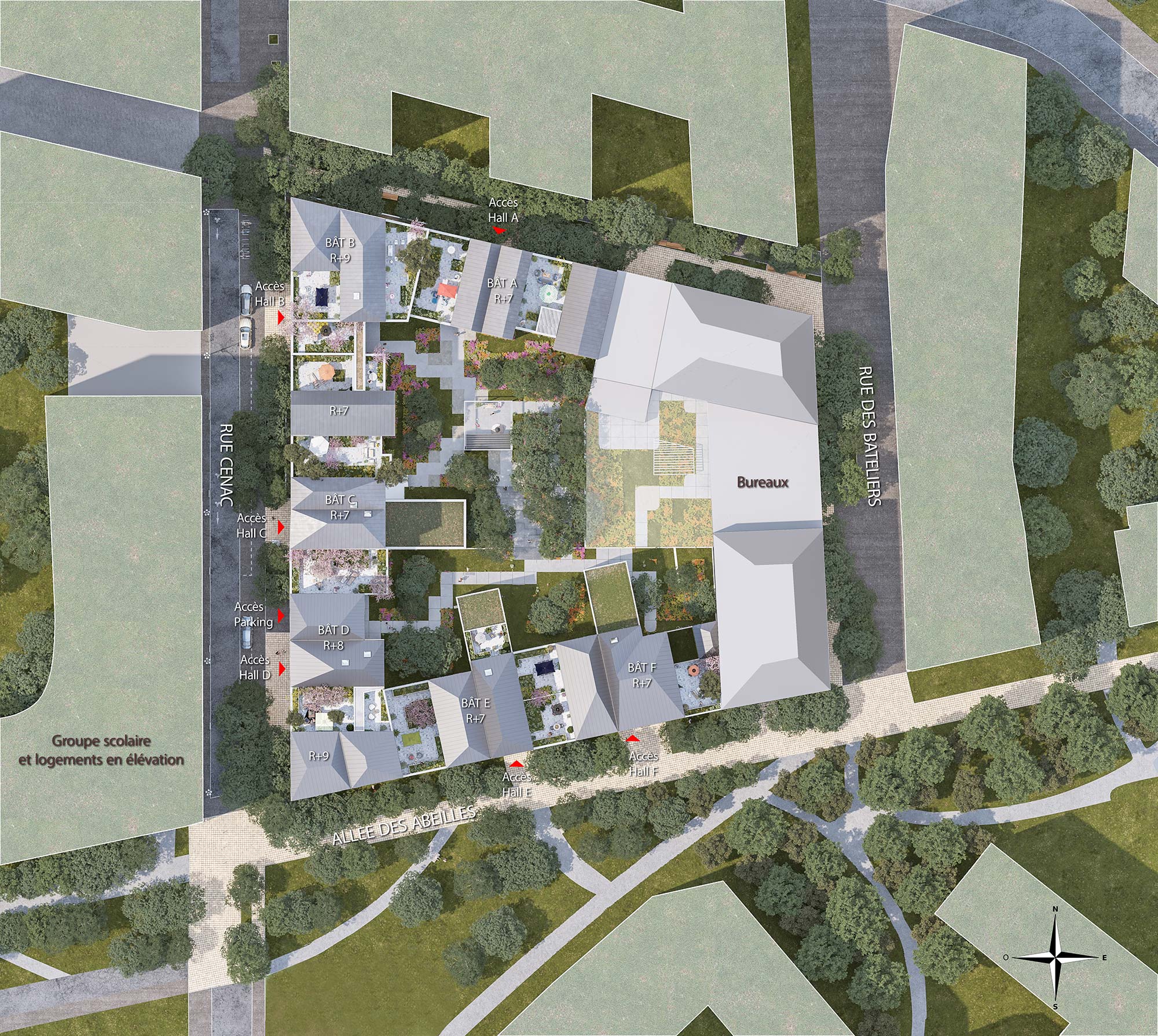 « C’est une bastide contemporaine qui accueille, en son cœur, un îlot paysager à partager et qui s’ouvre, en périphérie, sur la métropole bordelaise. Ce sont autant de bâtiments mitoyens accolés qui constituent l’écrin de ce jardin en ville. Nous avons traité chaque logement avec la volonté d’offrir des lieux de vie désirables : généreux en surface et en spatialité, riches d’une lumière naturelle abondante. Des logements uniques qui tirent pleinement parti de la spécificité de la forme urbaine de la bastide, développant chacun une façade urbaine et une façade sur le cœur d’îlot. »