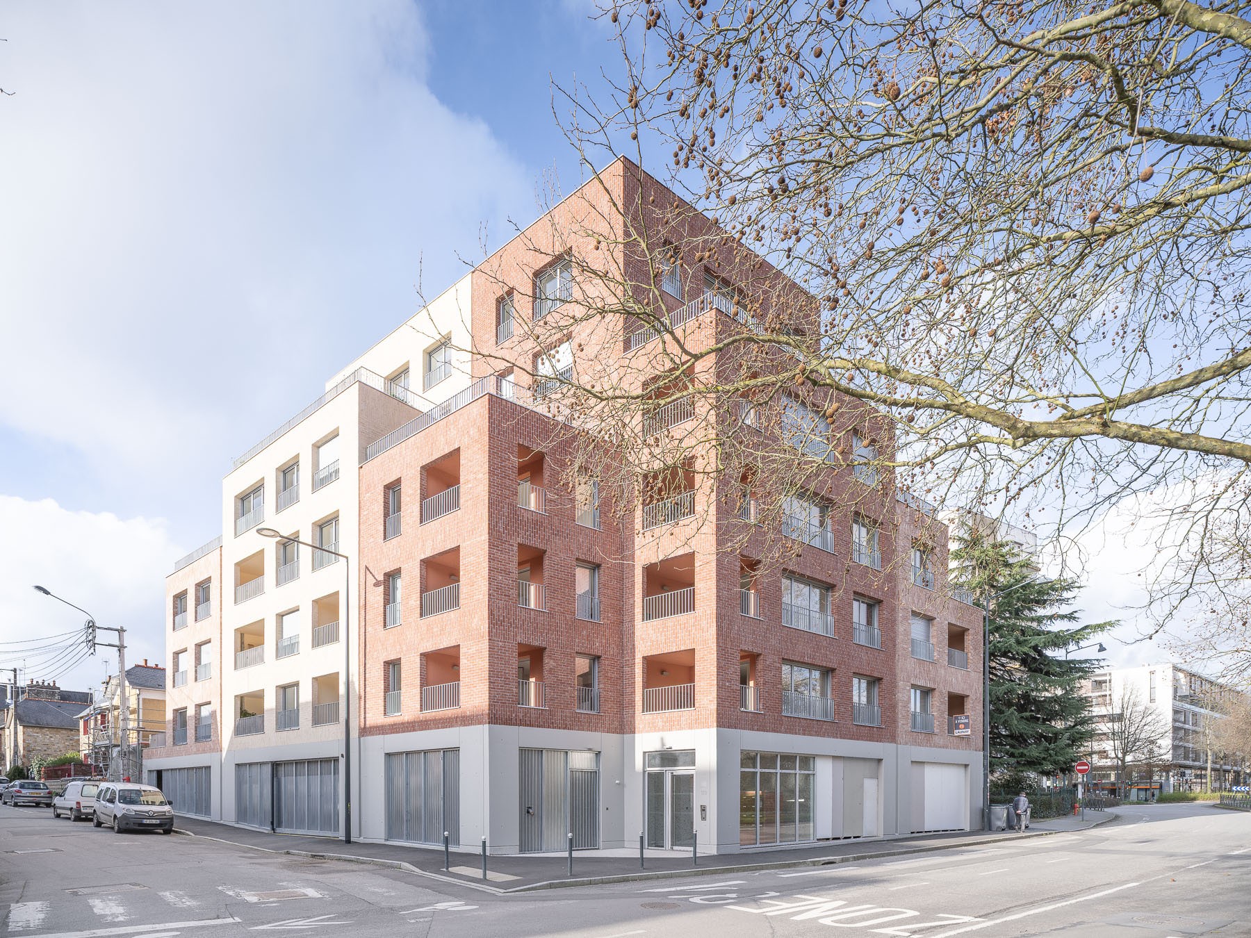 "Par sa position privilégiée à l’angle du boulevard Maréchal de Lattre de Tassigny et du quartier résidentiel La Touche-Mac Mahon, le projet accompagne la métamorphose de la ville le long du canal Saint-Martin. Nous avons cherché à assurer une continuité urbaine entre ces deux échelles par une construction fragmentée et graduelle. L’échelle domestique est affirmée par les façades découpées et les matières. Le projet offre une impression de plusieurs volumes : un jeu de tonalité et de texture, ainsi que des toitures terrasses habitées viennent alors individualiser le caractère de chaque logement. Les appartements sont largement vitrés, ouverts sur les espaces extérieurs. Cette relation harmonieuse avec l’environnement sera alors au centre de l’appropriation de cette résidence par ses futurs habitants." Thomas POUSSET - Kraft architectes