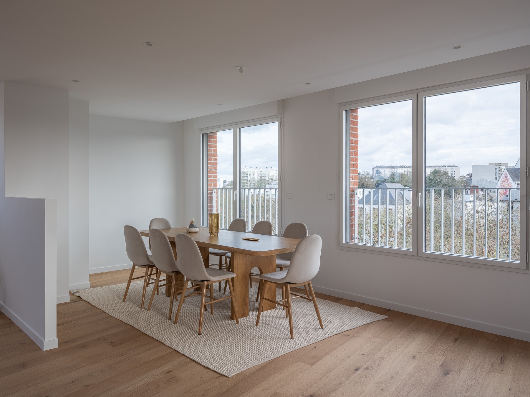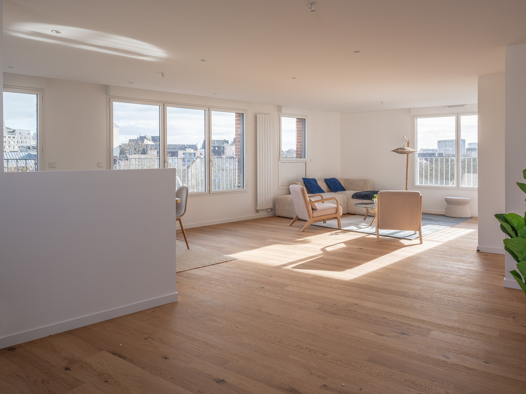 Situé en plein cœur de Rennes, cet appartement, niché au dernier étage de la résidence, conjugue design contemporain, luminosité et confort. Pensé pour offrir un cadre de vie unique, il se distingue par ses espaces ouverts et ses terrasses généreuses, véritables prolongements du lieu de vie.