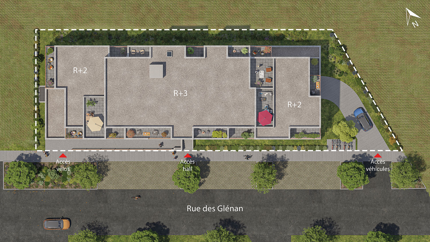 LancementÀ Vezin-le-Coquet, la résidence TERRASSES DES GLÉNAN bénéficie d'un emplacement privilégié et de vues dégagées vers de vastes espaces paysagers au nord et à l’est. Son architecture sobre et lumineuse portée par ses façades blanches composent un ensemble épuré, parfaitement intégré dans l’environnement résidentiel de la commune.