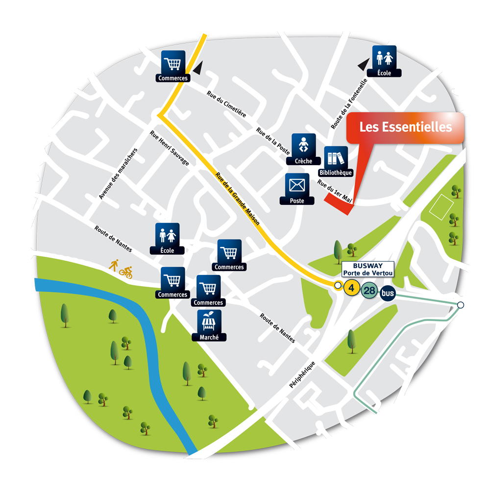 A moins de 10 minutes du centre-ville de Nantes, Les Essentielles profitent d’un emplacement géographique privilégié